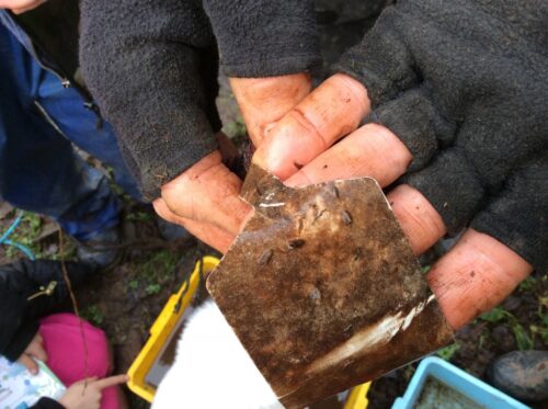 Just before Christmas, the year 2 children were learning about habitats and microhabitats. As part of their science learning at forest school, they put some stones in an orange bag, tied it to some string and Kris then carefully put it into the river. This week, it was time to pull the bag out of the river and find out if anything had setup a new home in there. The children found lots of different things including leeches and a freshwater shrimp! We’re going to do the same thing again in the summer term to find out if we find anything different in the warmer weather.